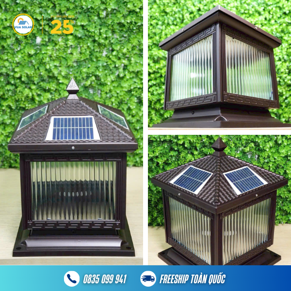 Đèn trụ cổng năng lượng mặt trời 25×25 cm giá: 900.000 VNĐ / chiếc