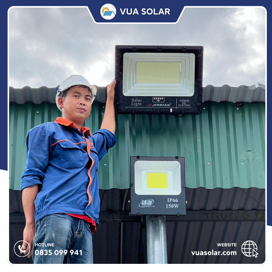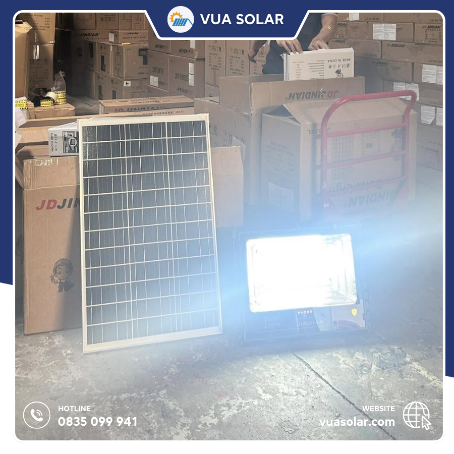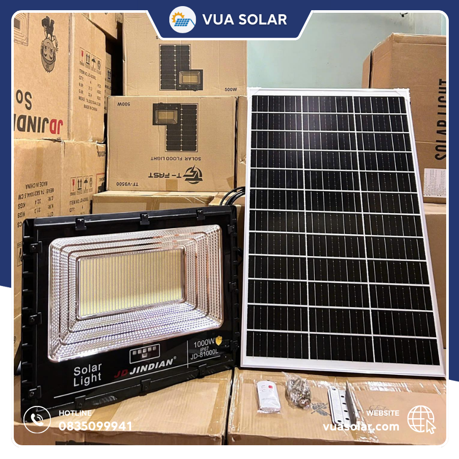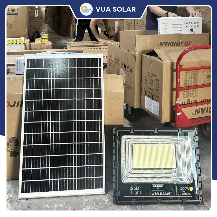 Vua Solar tự hào là nhà phân phối chính hãng đèn năng lượng mặt trời Jindian tại Việt Nam. Khi mua đèn pha năng lượng mặt trời 1000W JD81000L tại Vua Solar, bạn nhận được:
