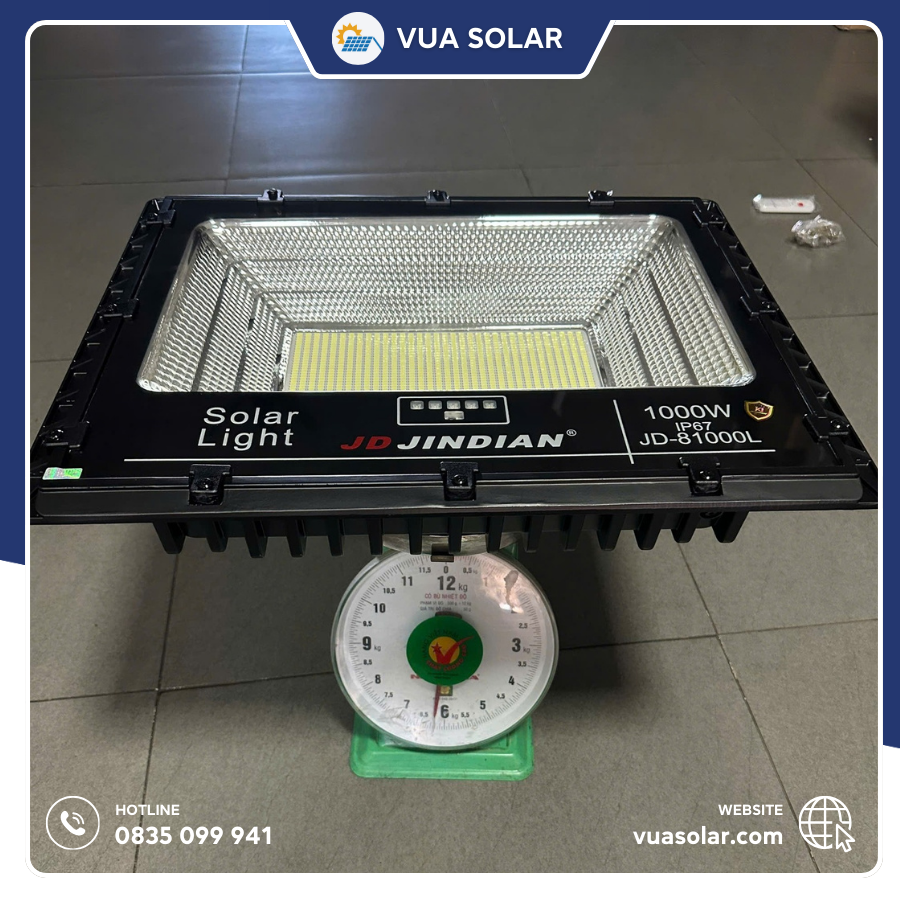 Đèn pha năng lượng mặt trời 1000W JD-81000L là thiết bị chiếu sáng cao cấp của hãng Jindian, được Vua Solar phân phối chính hãng tại Việt Nam. Với công suất chiếu sáng mạnh mẽ, thiết kế bền bỉ cứng cáp và được tích hợp nhiều công nghệ tiên tiến. Sản phẩm này đáp ứng mọi nhu cầu chiếu sáng từ sân vườn, nhà xưởng đến các dự án. Bài viết dưới đây sẽ cung cấp thông tin chi tiết về đèn pha năng lượng mặt trời JD 1000w. Đây là lý bạn do nên chọn Vua Solar và cách sản phẩm này giúp tiết kiệm chi phí, bảo vệ môi trường.