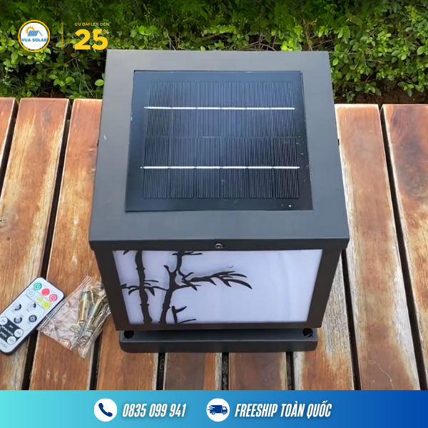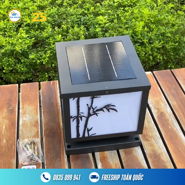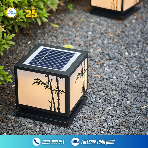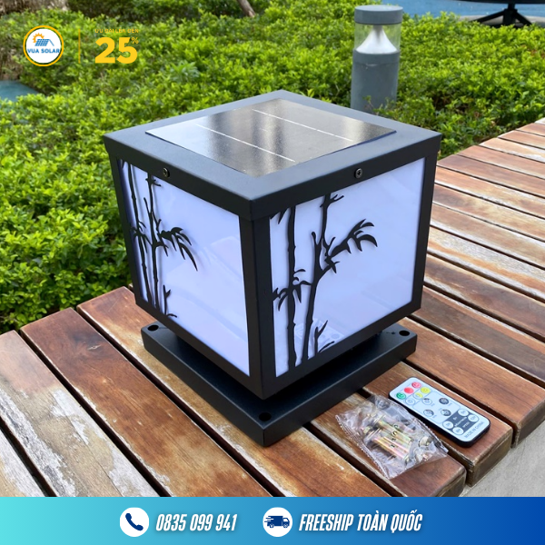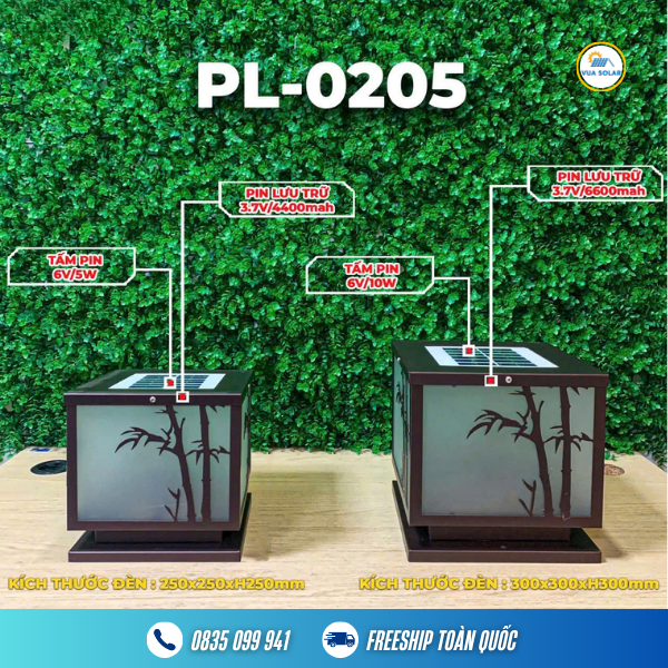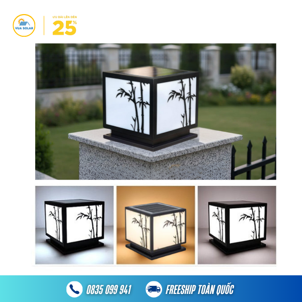 Đèn trụ cổng vuông năng lượng mặt trời PL-0205 (Cây Tre)