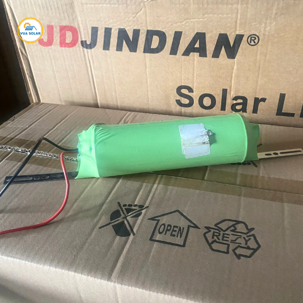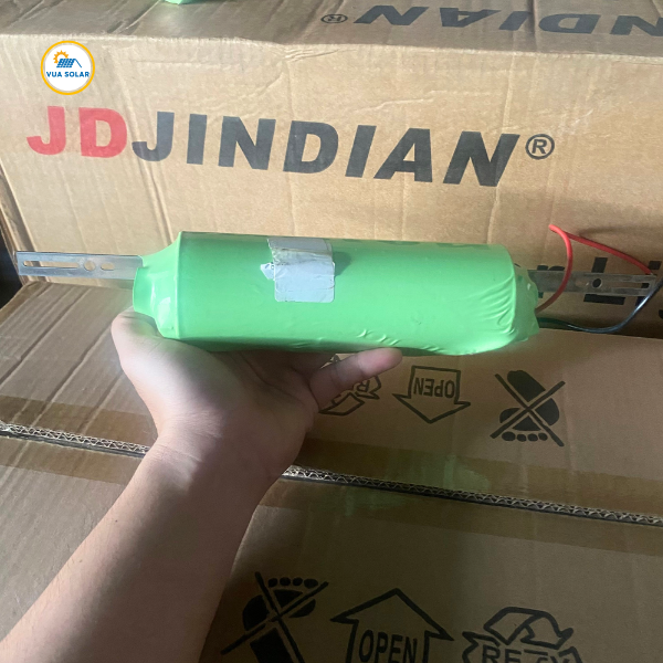 Cục pin trông khá lớn là vì nó chứa 4 cell pin (33155) ghép song song để đạt dung lượng khoảng 60Ah. Giúp cell pin chuẩn 33155 tương thích với tuyệt đối đèn năng lượng mặt trời jindian 1000w. Nên bạn có thể tự mua 1 khối pin 33155 (3,2V) dung lượng 60.000mah này về để thay thế pin cũ trong đèn jd 81000l nhé.