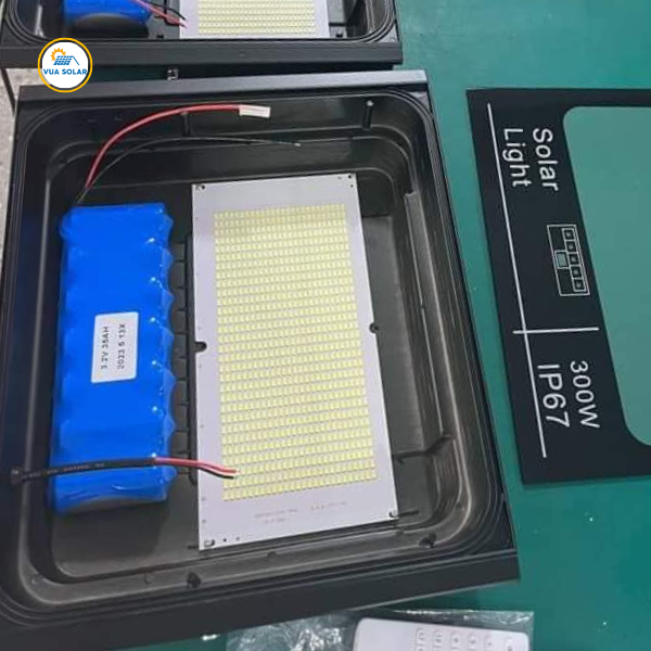 Thay pin mới: Thực hiện tháo pin cũ ra khỏi vỏ đèn, sau đó lắp khối pin đèn năn lượng 300w mới vào. Phải đảm bảo các cực được kết nối chính xác (+ với +, – với -).