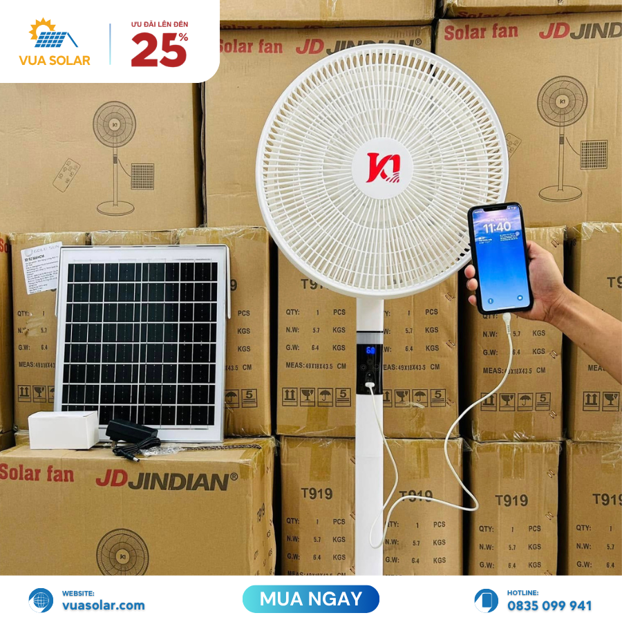 Vua Solar là đơn vị phân phối chính thức quạt năng lượng mặt trời JD-T919, cam kết mang đến sản phẩm chất lượng cao cùng dịch vụ hậu mãi uy tín. Dưới đây là những lý do bạn nên chọn mua tại Vua Solar: