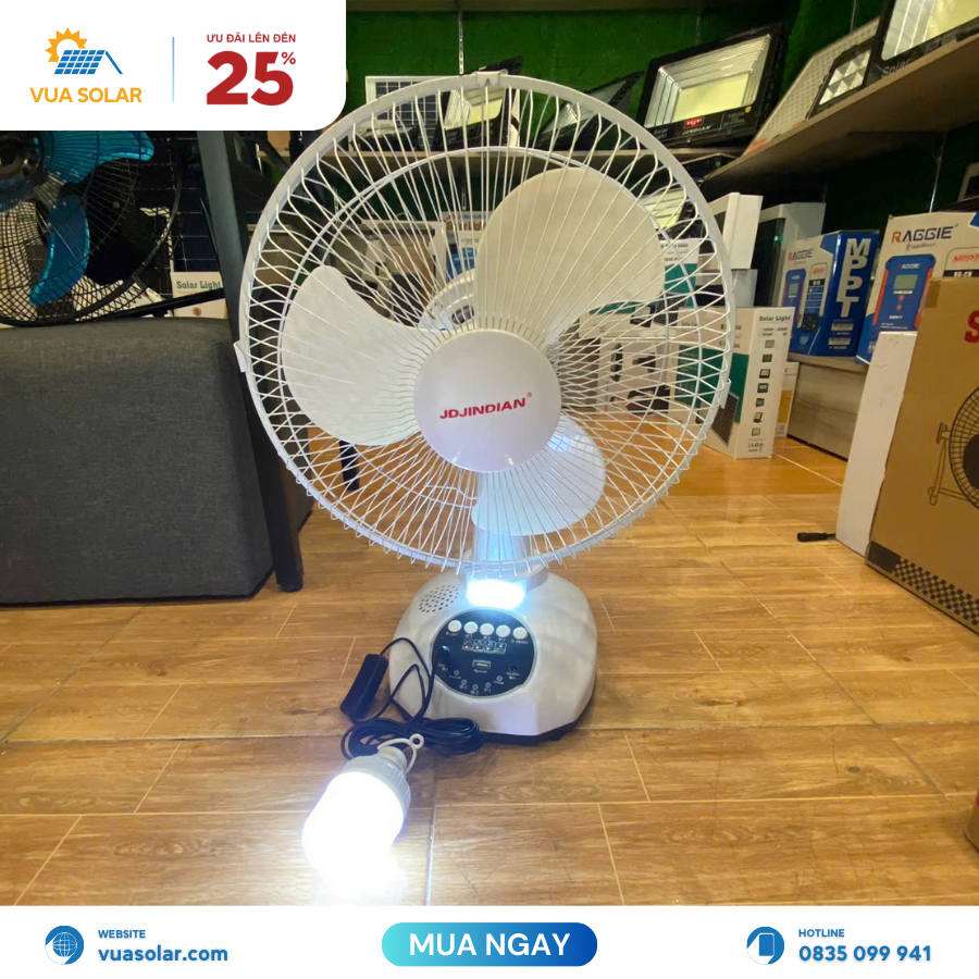 Điều này làm cho quat nang luong mat troi mini JD-T9 trở thành lựa chọn lý tưởng cho những khu vực có nguồn điện. Hoặc nguồn điện lưới không ổn định cũng như dành cho những khách hàng mong muốn giảm bớt tiền điện.