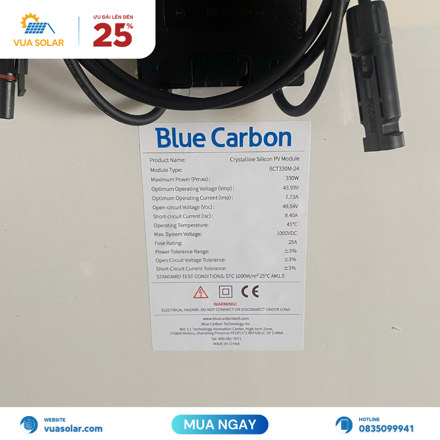 1. Giá tấm pin năng lượng mặt trời 330w Mono – Thương hiệu Blue Carbon